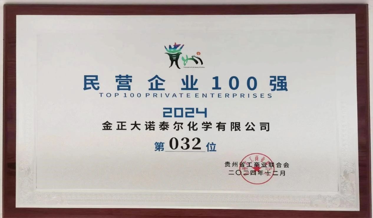 2024年12月,貴州省工商聯在貴陽召開新聞發布會,發布“2024年貴州民營企業100強榜單”和“2024年貴州制造業民營企業20強榜單”。金正大諾泰爾化學有限公司位列“2024年貴州民營企業100強”第32位,并躋身“2024年貴州制造業民營企業20強”第19位。